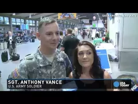 A soldier’s homecoming celebration at the airport turns in to a surprise for his girlfriend.